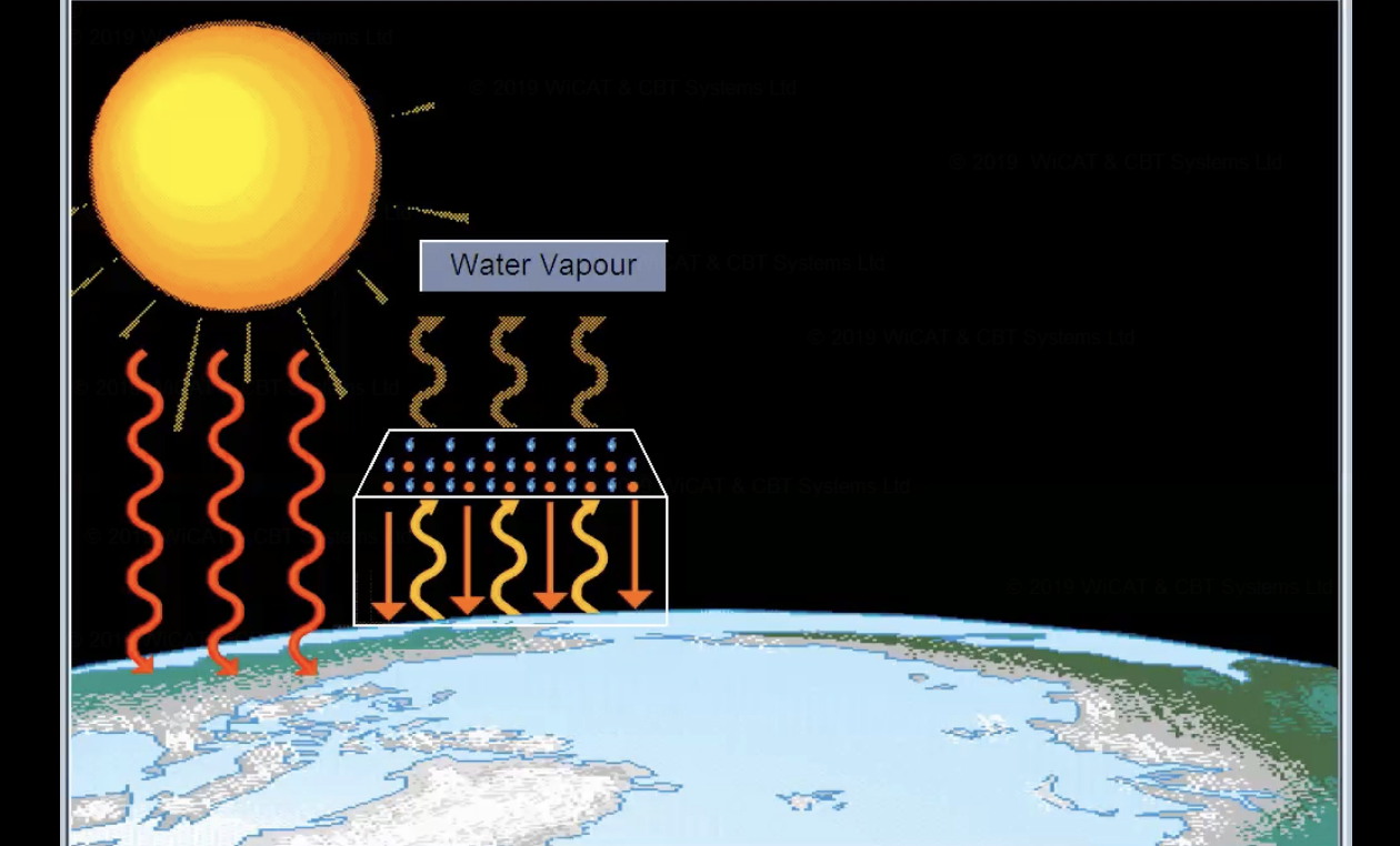 Water vapour absorbs the heat.