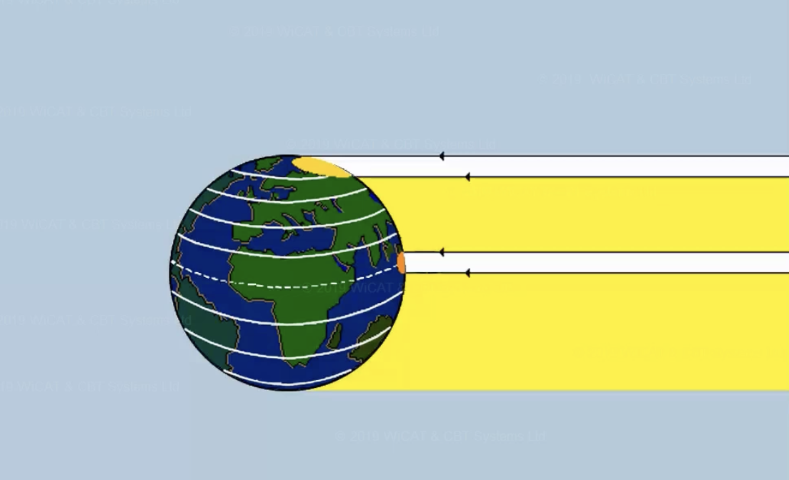 This is because the solar ration is ‘spreadout’ due to the sloping of the surface.