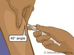 45 degree angle with aspiration; under the skin -insulin injections