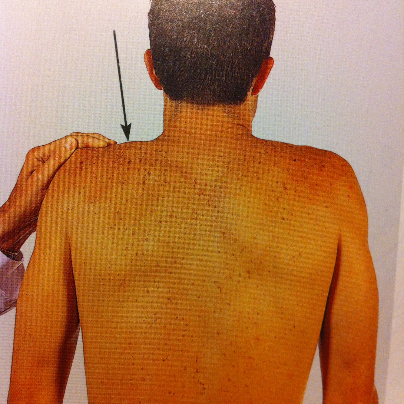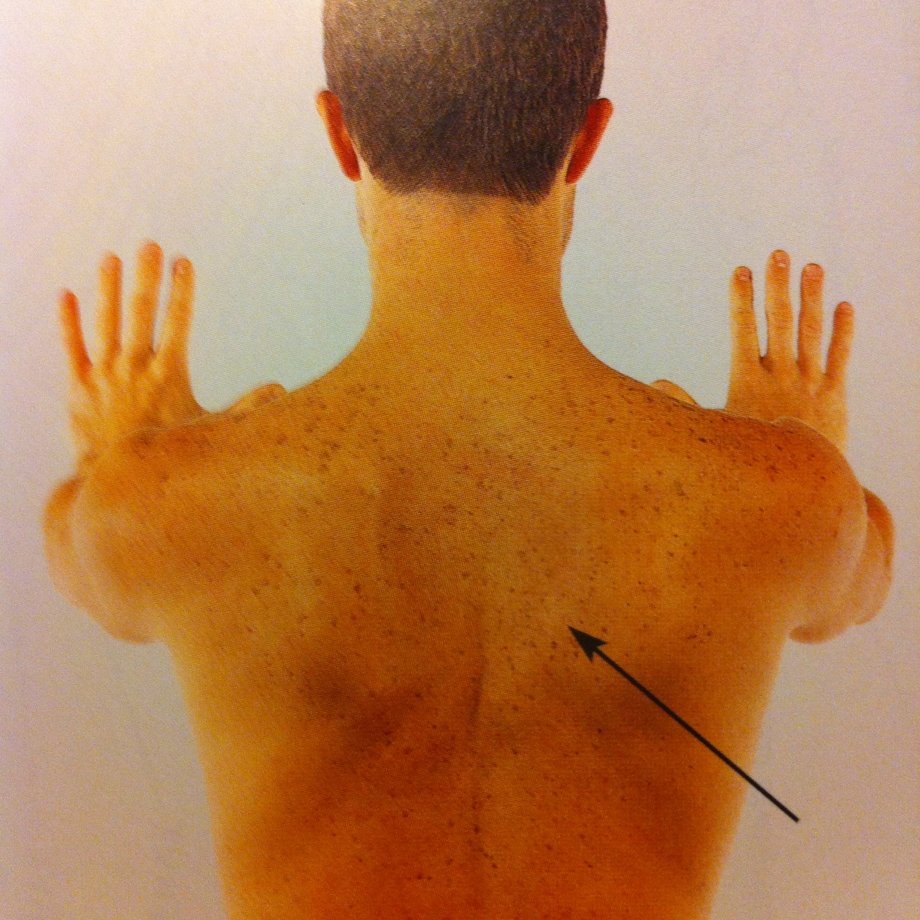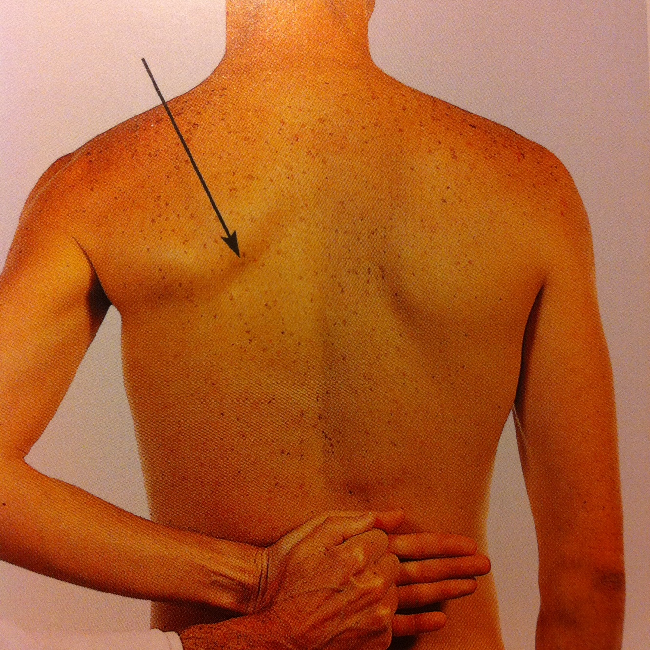 The patient is pressing the palm of his hand backwards against the examiner’s hand. The muscle bellies can be felt and sometimes seen at the arrow. This represents the rhomboids. What is the nerve and roots?