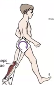 Heel strike, as the right leg swings forward the right innominate rotates posteriorly and the right heel hits the ground