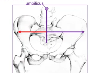 Ask patient to point to belly button, and then place hands on iliac crests and bring fingers to belly button