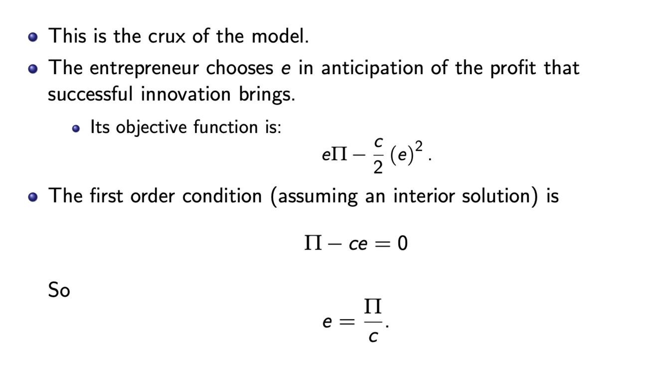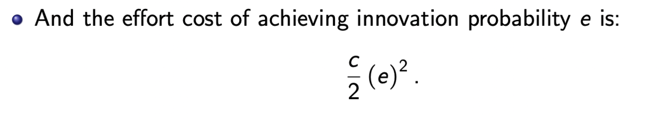 The innovator commits effort to innovation, effort determines probability of successful innovation