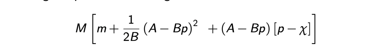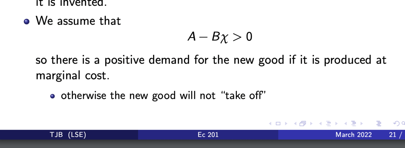 Where A is the parameter which tells you how valuable the new good is if it comes to being. from the goods and parameter B tells how price senstitive consumers are to price. ( if B is high consumers are very price sensitive.
