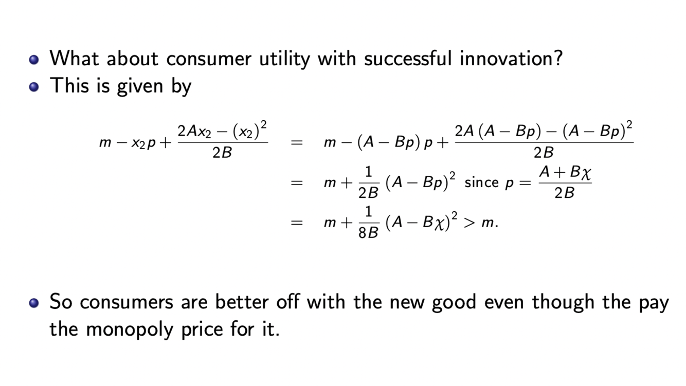 What is the consumers ultity with successful innovation ( HINT sub in the price and demand for good 2?