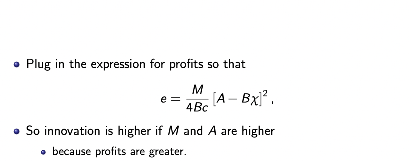e = 1 you put in so much effort to innovate you will deffo create suttin e = 0 no effort so no innovation.