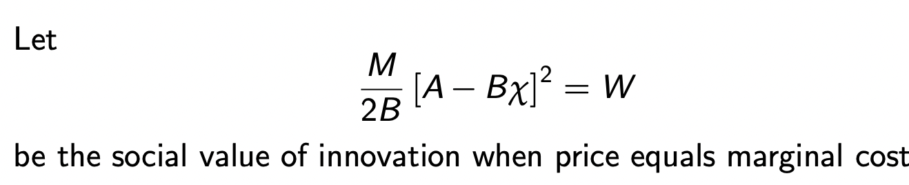 IF WE SUM CONSUMER AND PRODUCER SURPLUS WITH P = MC, WHAT IS THE TOTAL SURPLUS OF INNOVATION. ( DONT WORRY ABOUT MATHS HERE IF YOU DONT GET IT) ( SOCIAL PLANNER INNOVATION)