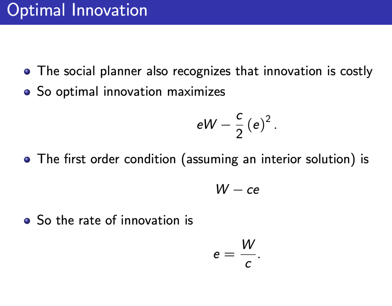 What determines the rate of innovation and whether it is socially optimal the rate that we find.