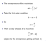 So suppose that an entrepreneur is contemplating putting effort into inventing a new good - success is unknown/uncertain. ( more effort, the more likelihood of success)