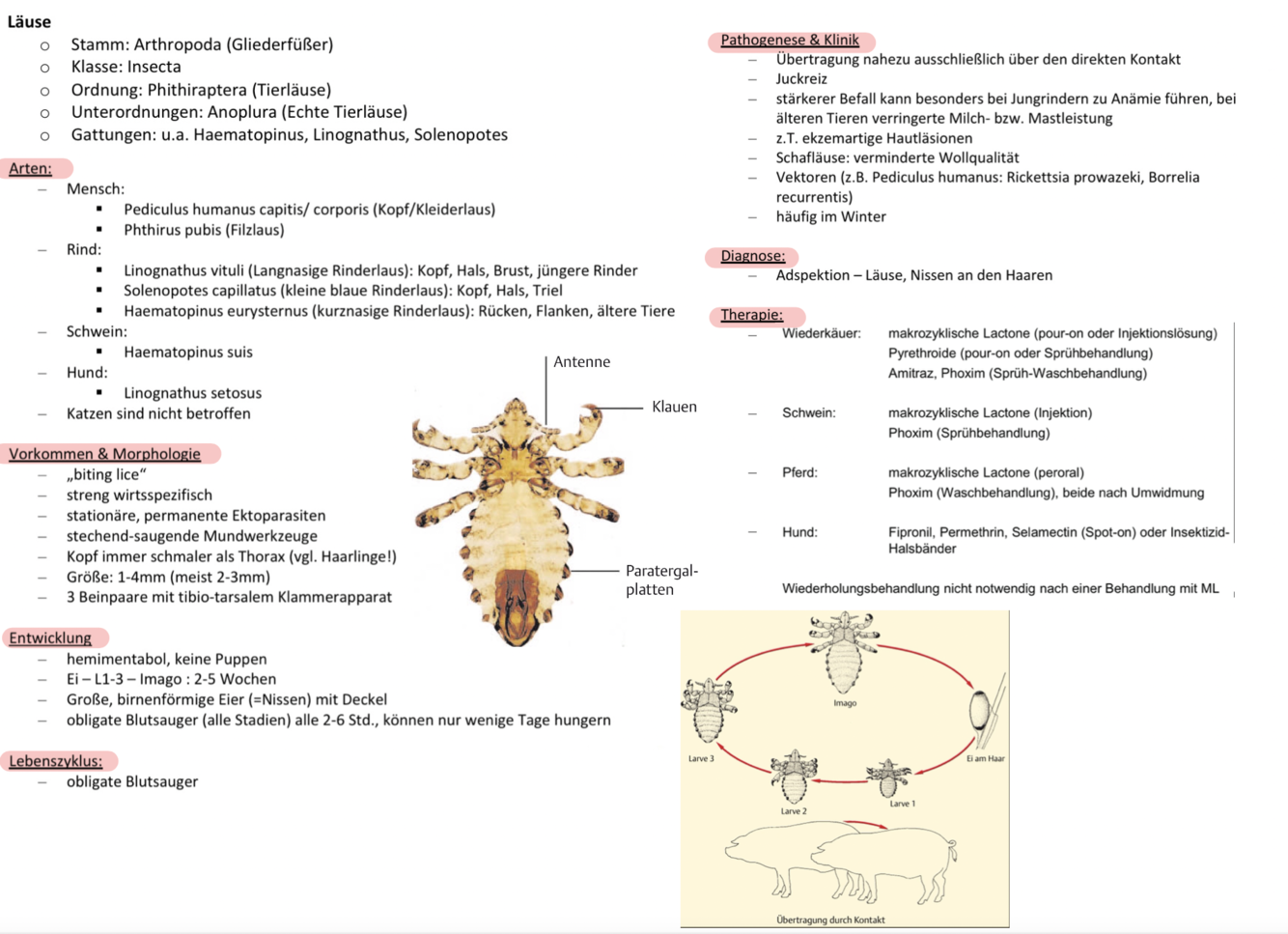 (Kalt- und Warmblüter, Mensch, v.a. Rinder und Pferde)