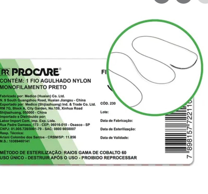 Absorvível (hidrólise, 180 dias), monofilamentar