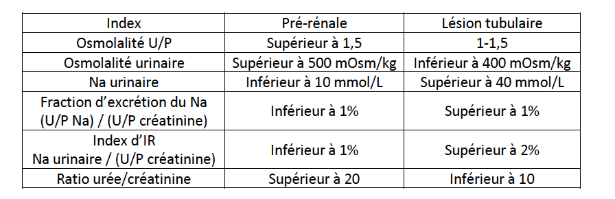 Interpréter les indices urinaires servant à distinguer une insuffisance rénale aiguë pré-rénale d’une nécrose tubulaire aiguë
