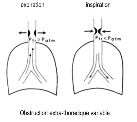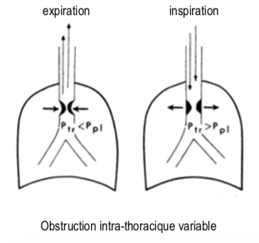 lésions dynamiques qui engendrent une obstruction partielle dépendante de la phase du cycle ventilatoire.