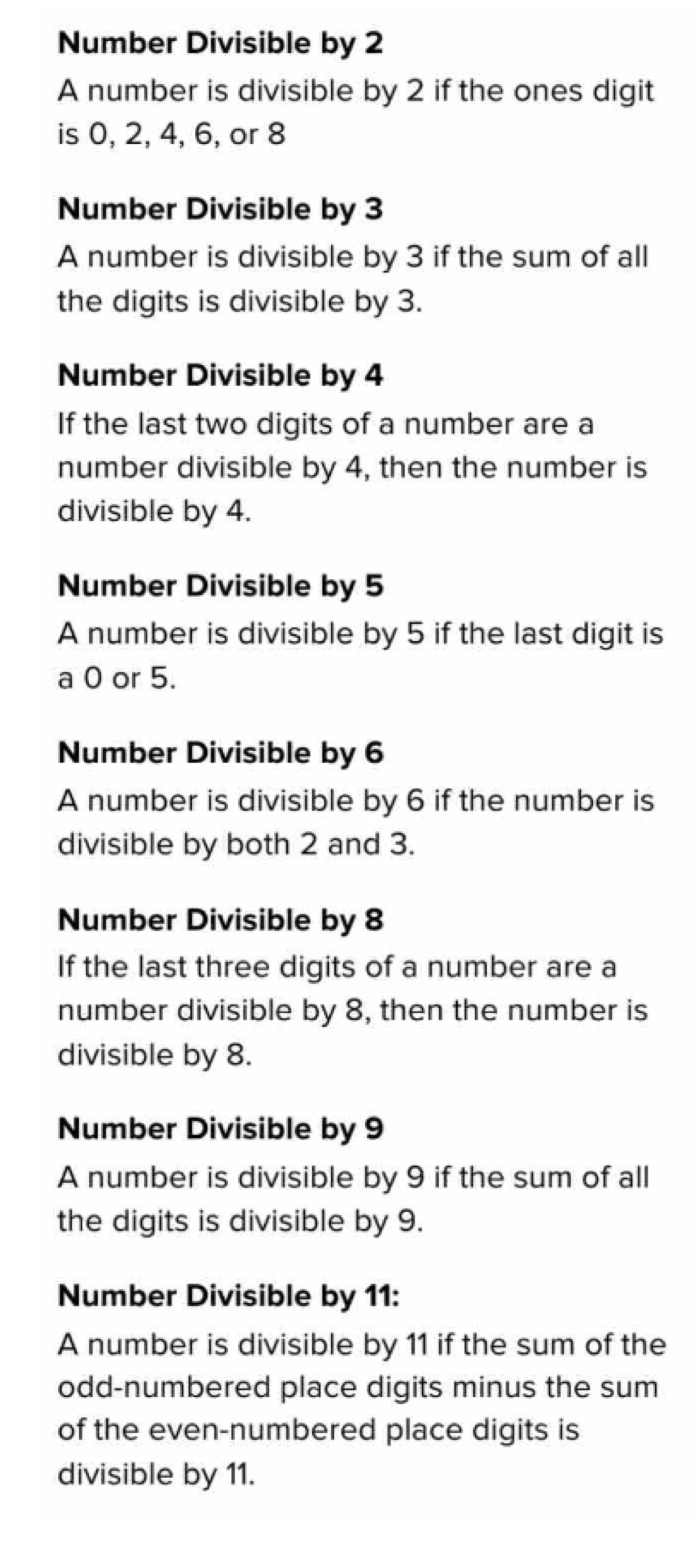 How would you know if a number is divisible by 2, 3, 4, 5, 6, 8, and 9
