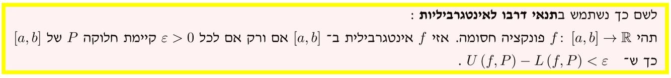 כיצד נוכיח אינטגרביליות של פונקציה בעזרת “תנאי דרבו לאינטגרביליות”?
