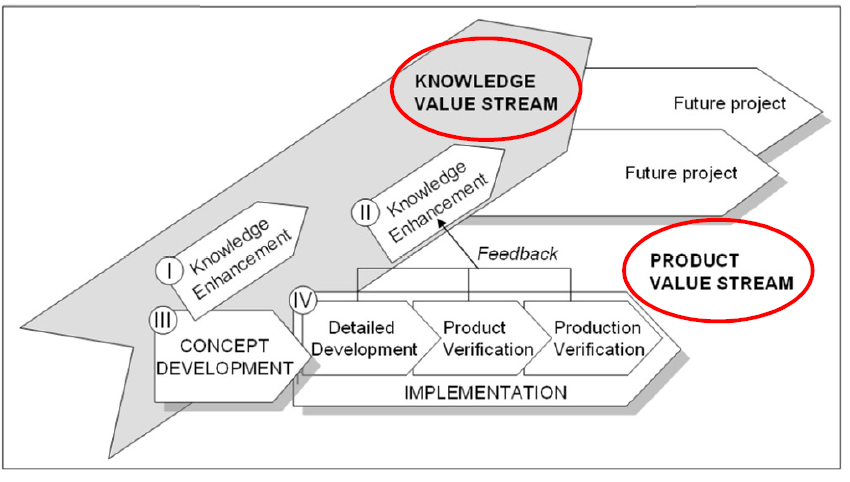 The Knowledge Value Stream: is about how knowledge is built up in the organisation and closing knowledge gaps. Knowledge building is needed in order to meet future customer needs/demands with good products/solutions.