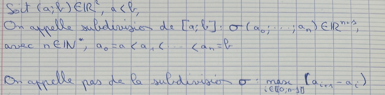 Qu’appelle-t-on «subdivision de [a;b]» et «pas d’une subsdivision» ?