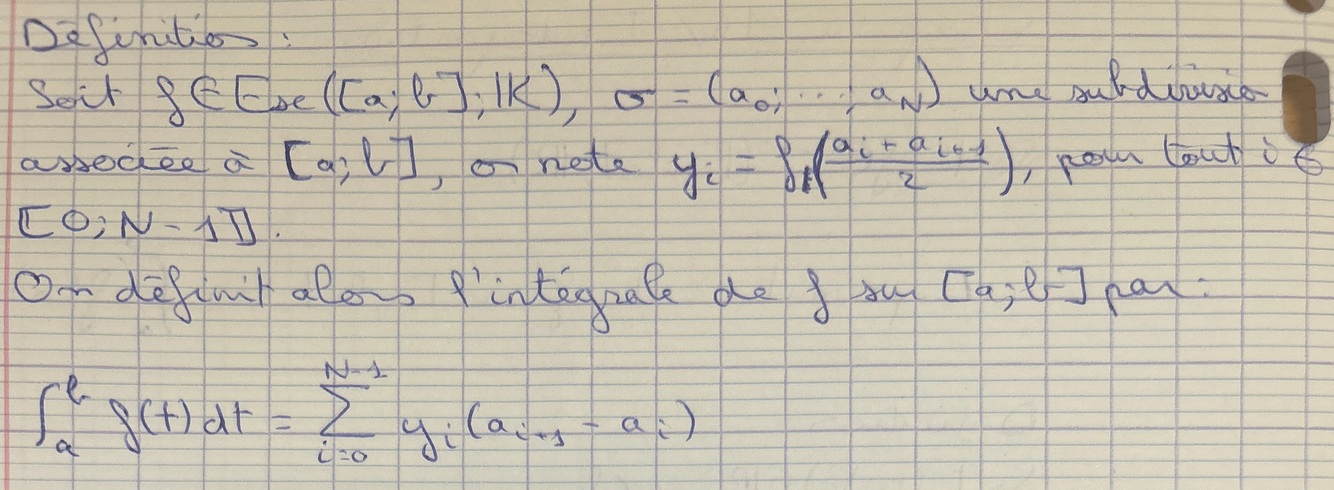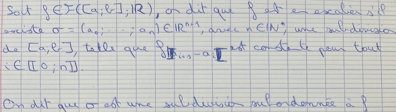 Comment note-t-on l’ensemble des fonctions en escalier sur [a;b] à valeurs dans R ?