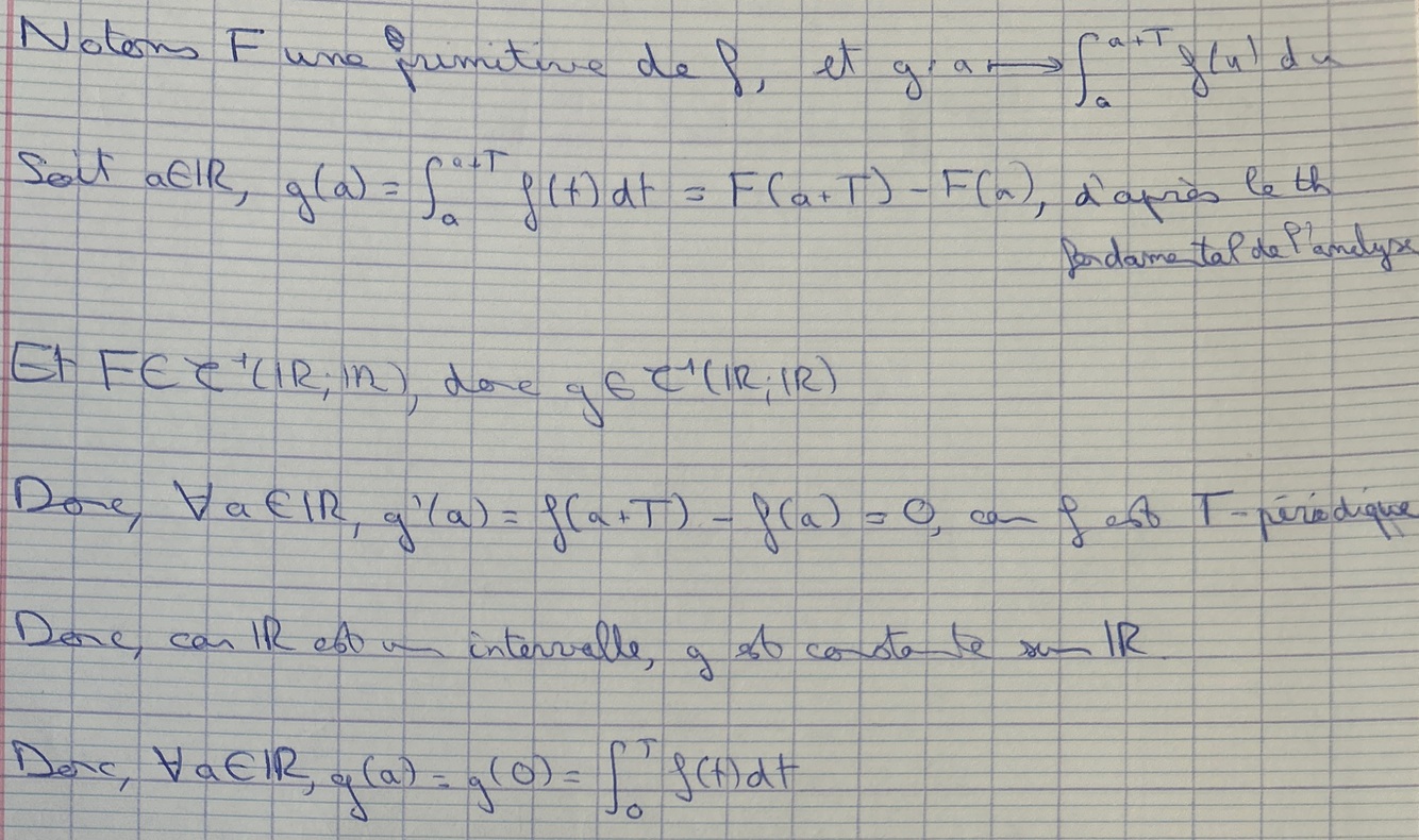 Enfin ∫<a→a>(f(t).dt) = 0 par définition