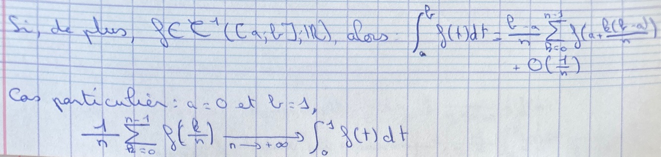 Que peut-on dire d’une somme de Riemann si la fonction est C1 ? Quel est la cas particulier courant ?