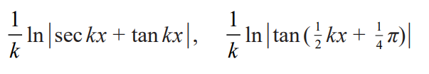 integral of sec kx