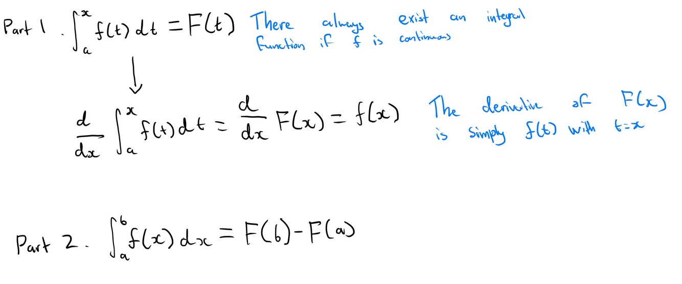 Given a continuous function f on the interval [a, b], with a≤x≤b, what does the fundamental theorem of calculus state?