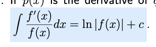 What is the solution to a type 1 rational function intergration. Where p(x) is the derivative of q(x)