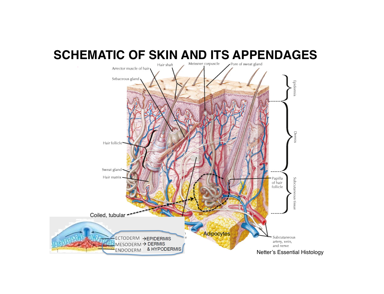 schematic of skin and its appendages