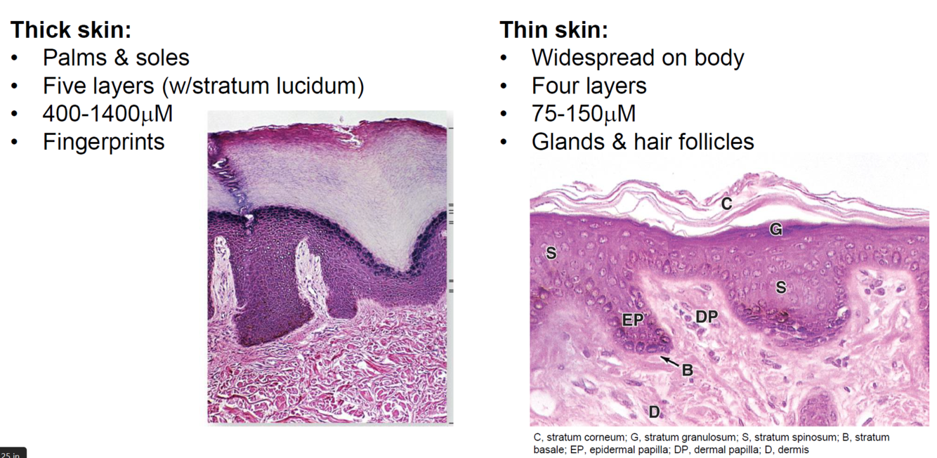 Which layer is specific to Thick Skin
