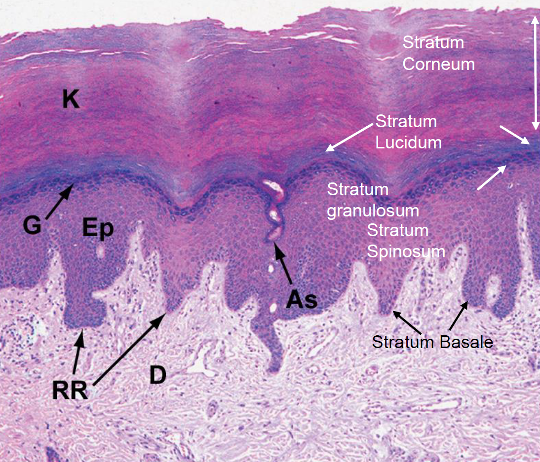 Thickest layer of which portion of the epidermis?
