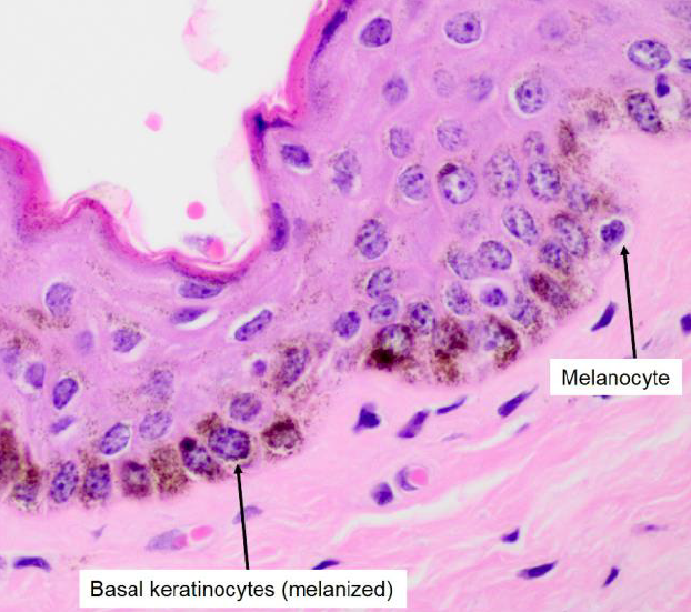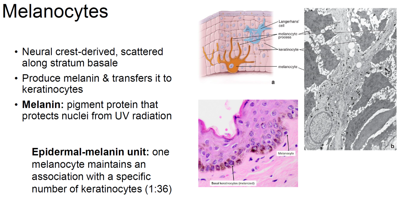 Melanocytes (produce melanin)