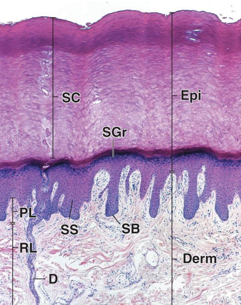 Keratinocytes with SCs interspersed