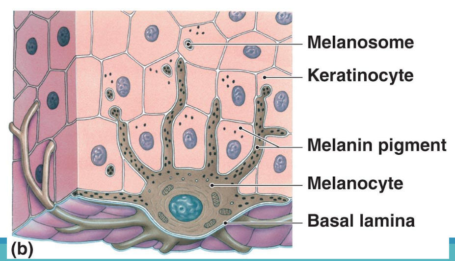- we all have roughly the same number of melanocytes, different numbers of melanosomes.