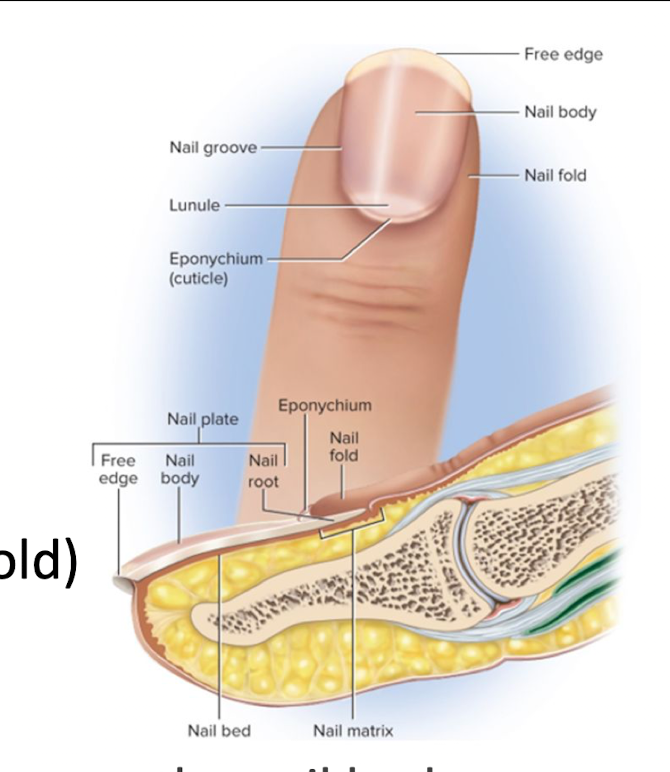 accessory structures: Originate in the dermis and extend through the epidermis to the skin surface