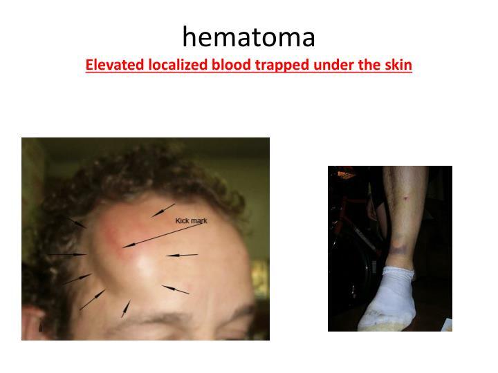 Elevated, localized collection of blood trapped under the skin that usually results from trauma