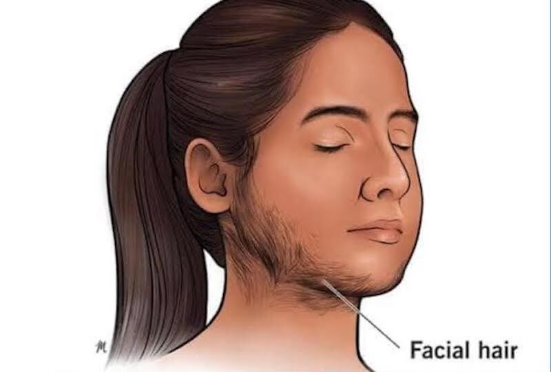 Hirsutism- Ëxcessive growth of hair in unusual places, especially in women; may be caused by hypersecretion of testosterone
