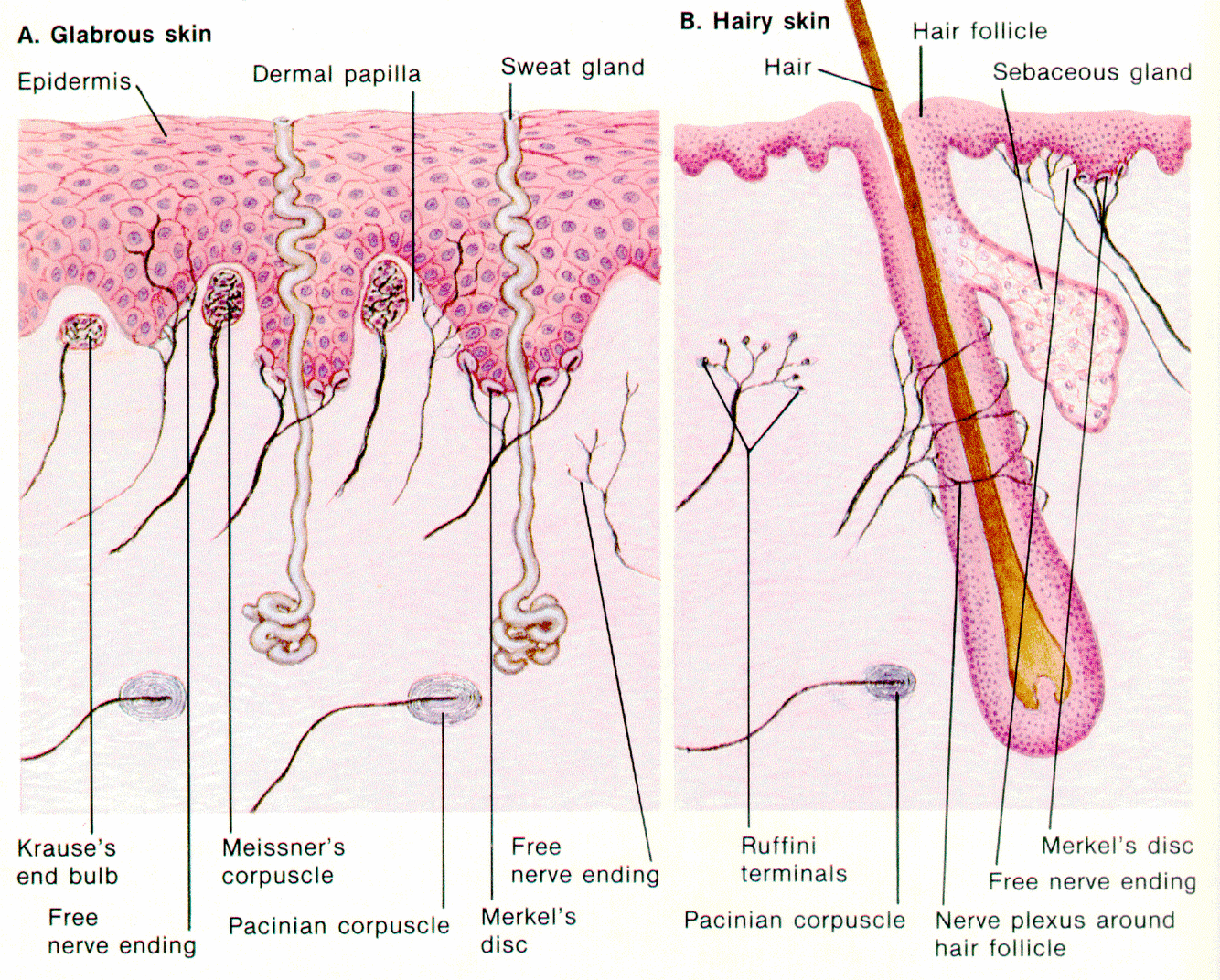 the medium encapsulated nerve endings found in the skin and activated by light touch.