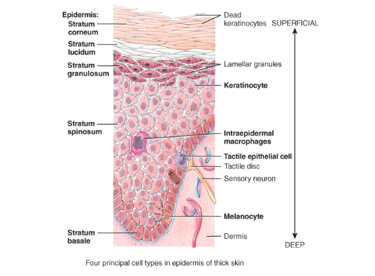 Discuss the four cell types of the epidermis.