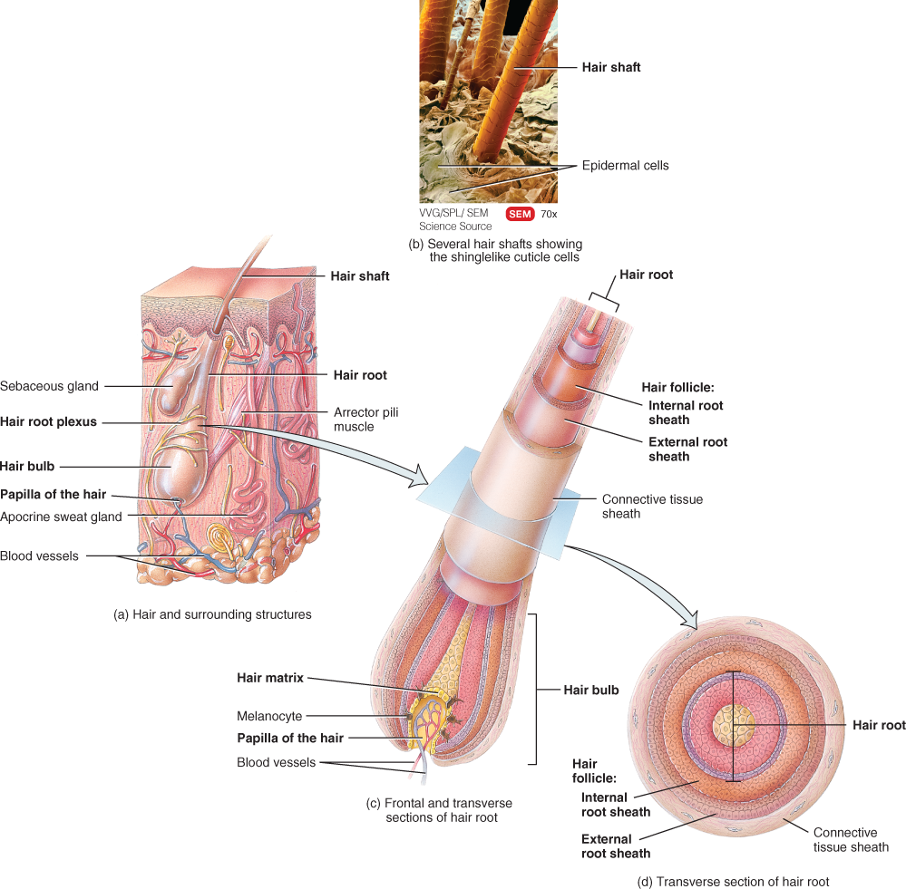 hair is an extension of the epidermal layer. which drops down into the dermal layer of skin.