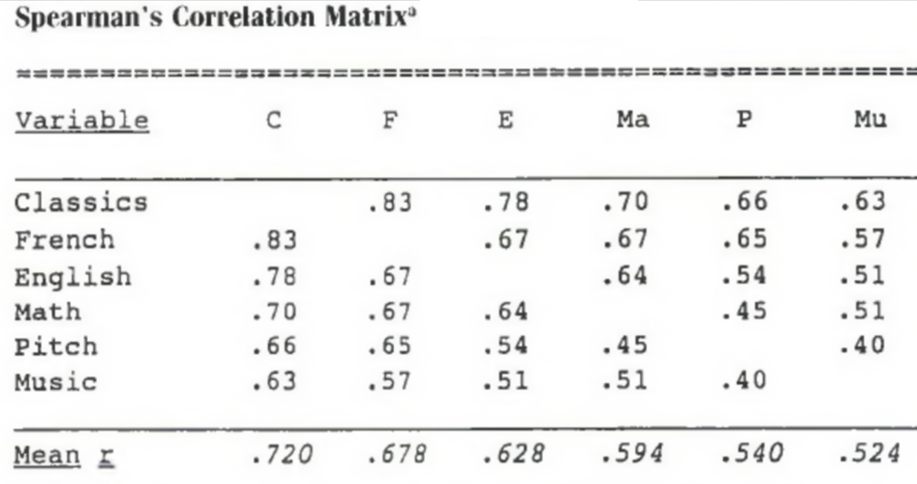 Postulated by Spearman as a common factor underlying all intellectual abilities, explaining high correlation between them
