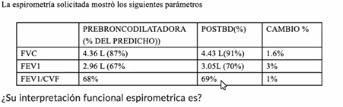 En base a los hallazgos clínicos, radiográficos y espirométricos el dx certero es