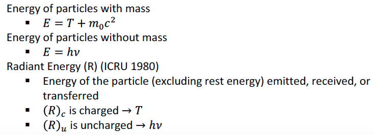 Radiant energy of uncharged particle leaving V except that which originated from radiative losses of kinetic enerygy by charged particle while in V