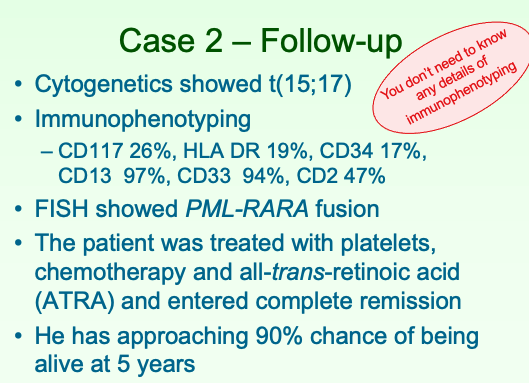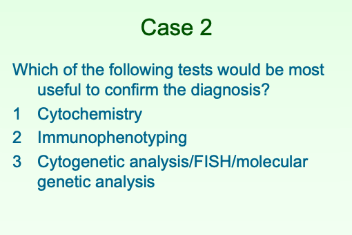 What would the cytogenetic test show? How would you manage this patient? What would the prognosis be with tx?