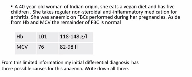 B12 deficiency - super high MCV (only seen due to folate and B12 deficiency)