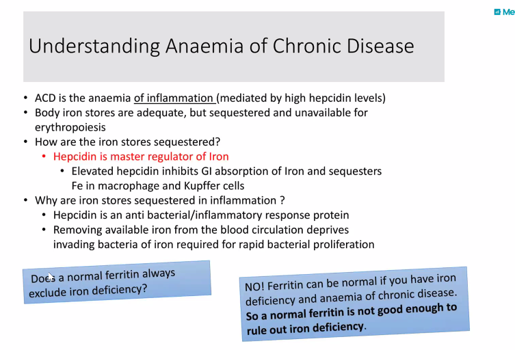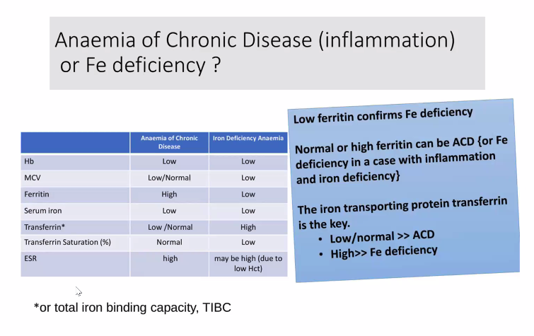 How do you differentiate between anaemia of chronic disease and iron deficiency anaemia?