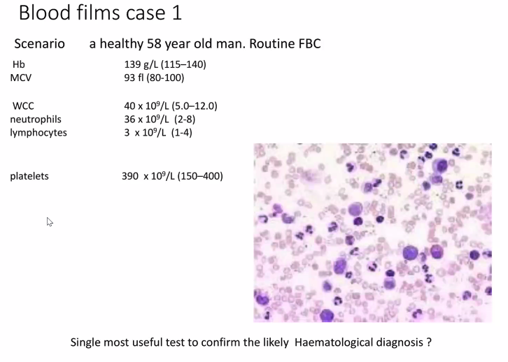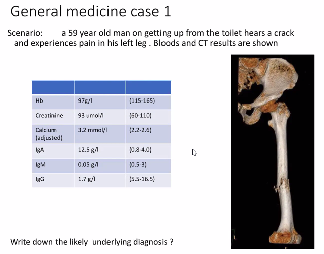 Could be due to blood cancer or a metastatic non-haematological cancer (likely prostate due to difficulty urinating)