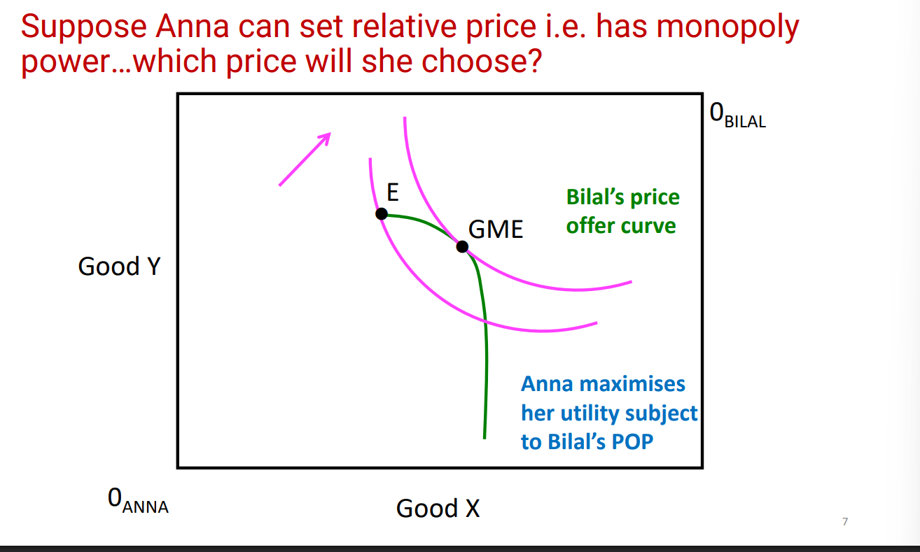 Anna forces down the relative price of the good she wants