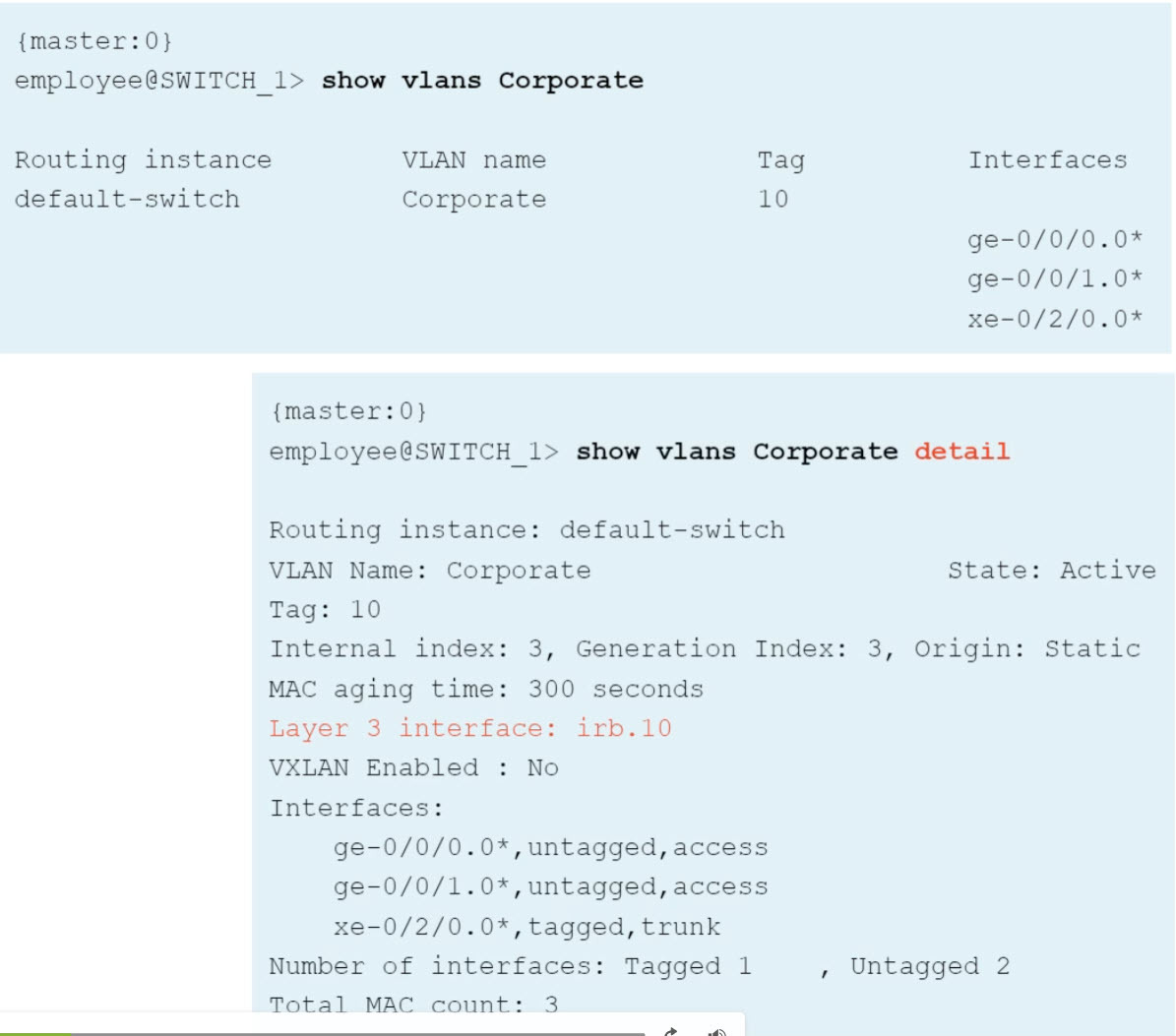 The ‘show vlans’ command displays the IRB interfaces, True or False?