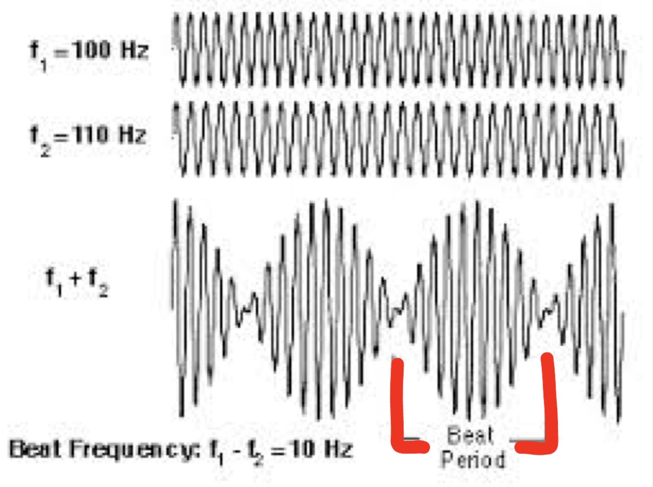 Beat frequency: difference between the carrier frequency of the two circuits (1 - 200 beats per second)