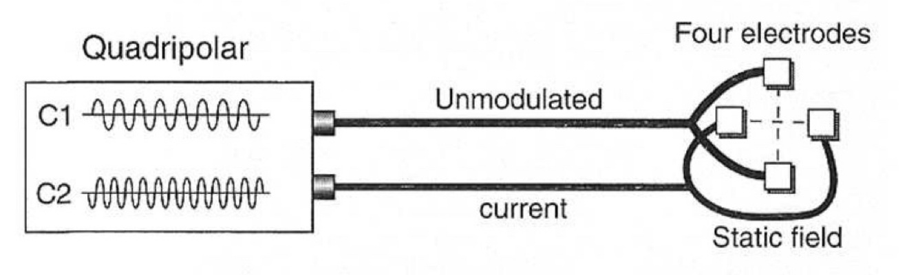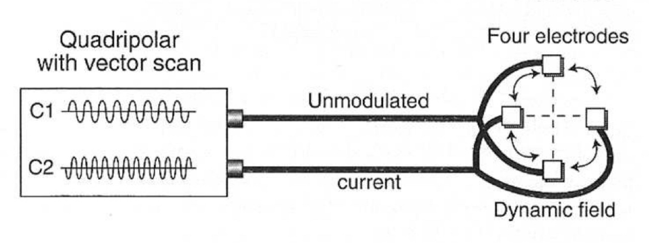 Quadripolar: 4 electrodes (2 pair of electrodes)
